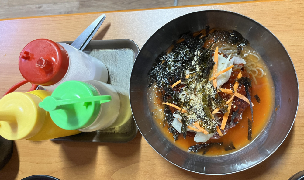 막국수도 시켰습니다. 막국수 비주얼이 생각이랑 다른 듯했습니다. 추가 양념은 개인적인 입맛에 맞춰서 넣으시면 됩니다. 시원한 물냉면과 비빔 사이 정도 느낌 같았습니다.