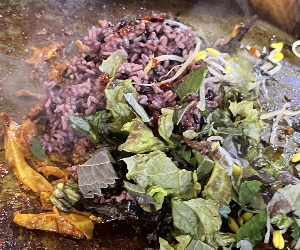 드디어 남춘천 닭갈비의 하이라이트! 볶음밥을 시켰습니다. 한 공기를 시켰는데도 볶고 나니 양이 꽤 된 것 같았습니다. 닭갈비가 얼마나 남아야 할지 몰라서 조금 많이 남겼는데 사장님께서 적당한 양만 볶고 남은 양은 한쪽으로 빼주셨습니다. 남춘천닭갈비는 특이하게 흑미밥으로 볶아주셔서 밥알이 더 살아있는 느낌이었습니다. 맛있고 든든하게 먹은 기분 좋은 춘천의 밤이었습니다.