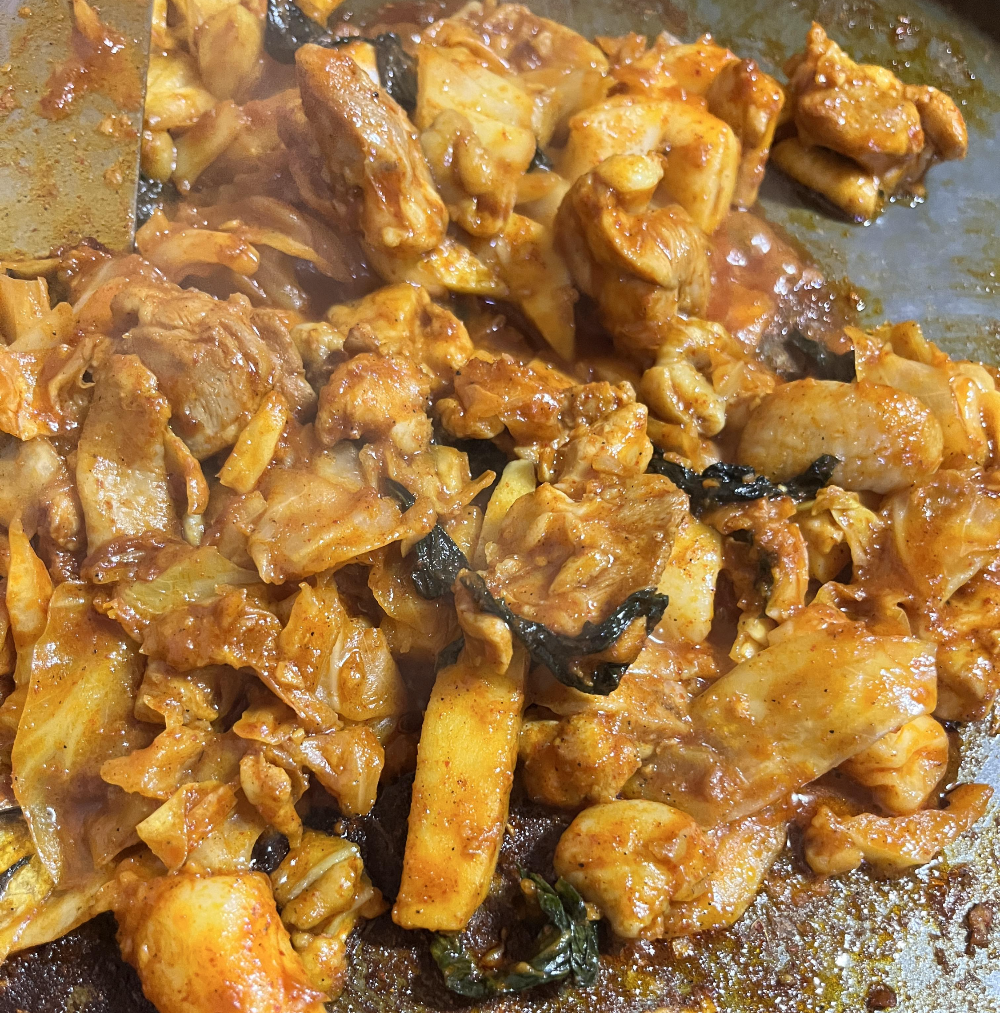 맛있게 볶아진 닭갈비입니다. 아... 군침이 돕니다 흑 ㅠㅠ 조만간 지난날을 추억하며 한번 해 먹어야겠습니다.
