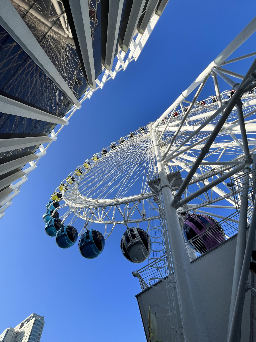 원형으로 생긴 대관람차가 예쁘긴 했습니다. 색깔별로 예쁜 투명 구슬 같은 느낌이랄까? ㅎㅎㅎ 다양한 색상이 있지만, 색상을 고를 수 없다고 안내되고 있습니다. 차례대로 타야 합니다. 그게 공중도덕이겠지요! 저희는 빨간색이 선택되었습니다.