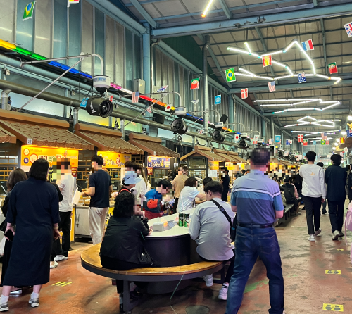 평소에 시장구경하는 걸 좋아합니다. 특히 요즘은 야시장이 많이 발달해 있기 때문에 분위기가 보고 싶어서 산책 겸 들렀습니다. 원래는 저녁을 먹고 2차로 들러볼 생각이었는데 저녁을 너무 잘 먹어서 맛은 보지 못했습니다. 다양한 종류의 음식들이 있었고, 소분 포장 용기에 담아주었습니다. 가운데는 앉아서 먹을 수 있는 공간이 마련되어 있어서 먹기 편해 보였습니다. 주류를 따로 챙겨 오셔서 즐기시는 분들도 많이 계셨습니다.
