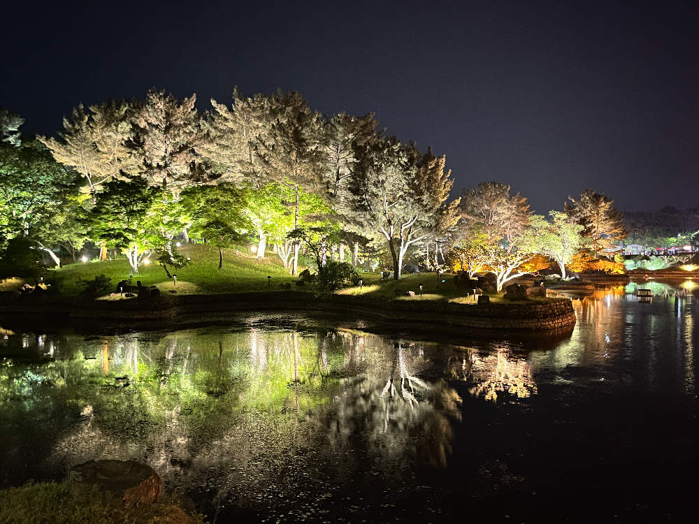 밤에는 사람이 많기 때문에 가까이 다가가서 보기기가 어려울 수 있습니다. 제가 방문했을 때는 줄 서서 차례대로 입장을 했고 이동하는 것도 약간 줄을 서서 이동하는 느낌이 들었습니다. 처음 입장했을 때보다 반바퀴 돌고 나서부터가 더 예쁜 느낌이 들었습니다. 시간이 늦었지만 사람들은 유쾌해 보였습니다. 인증사진도 많이 찍고 낮보다 활기차보이는 분위기였습니다. 오히려 낮에는 더워서 산책하기 힘들었는데 밤이 되니 시원해서 사람이 더 많고 분위기도 좋았던 것 같습니다. 한바퀴를 도는데 저는 20분 정도 걸렸습니다. 산책하기 딱 좋은 시간이었습니다. 밤공기를 쐬면서 가벼운 수다를 떨고 나니 배부르게 먹은 저녁도 편안해진 것 같았고, 핸드폰이지만, 그래도 사진을 찍으면서 즐겁게 구경을 했습니다. 사진기만큼 멋진 사진은 아니지만, 그래도 그날의 낭만들은 다 담긴 것 같았습니다.