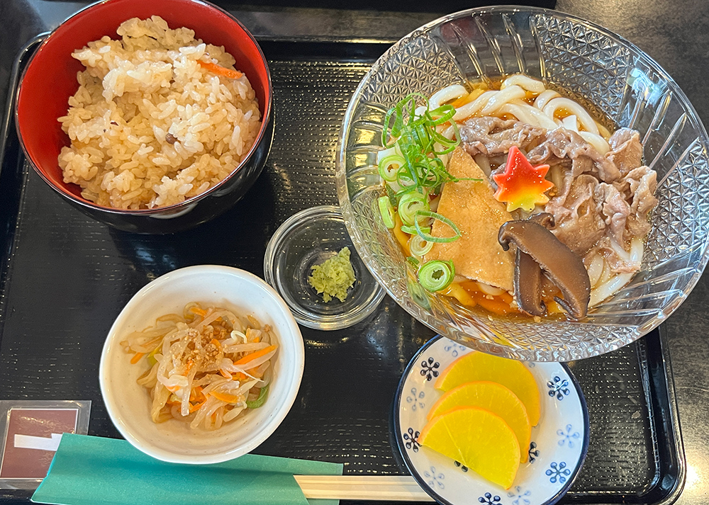 인기 있는 메뉴는 카레우동과 고기냉우동입니다. 단품메뉴는 1,000엔 아래고 밥이 추가된 세트메뉴는 1,000엔이 조금 넘습니다.