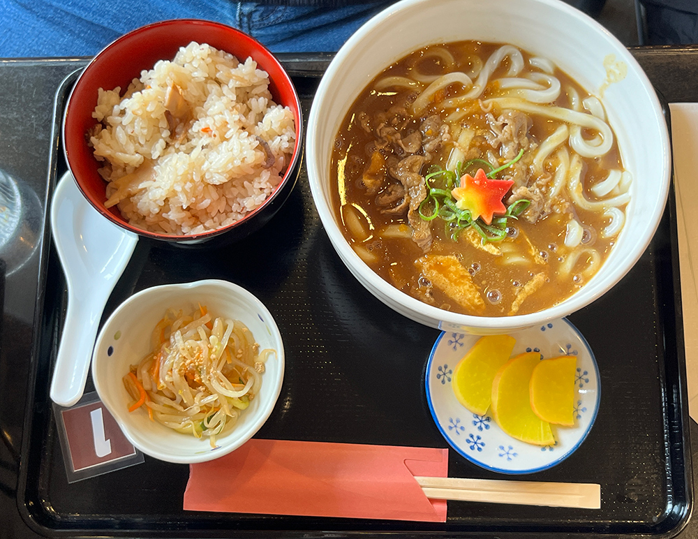 고기카레우동입니다. 소바와 고민이 되었지만, 우동을 많이 드시니 다들 우동으로 대동단결!! 밥에는 간장이 살짝 들어간듯했고, 쌉쌀한 듯 삼삼한 맛이었습니다. 신기하게 계속 먹게 되는 그런 맛이었습니다. 면을 다 먹고 밥이랑 같이 먹기 좋은 메뉴였습니다. 따뜻한 국물이다 보니 여름에는 다 먹고 나면 더울 수 있습니다.