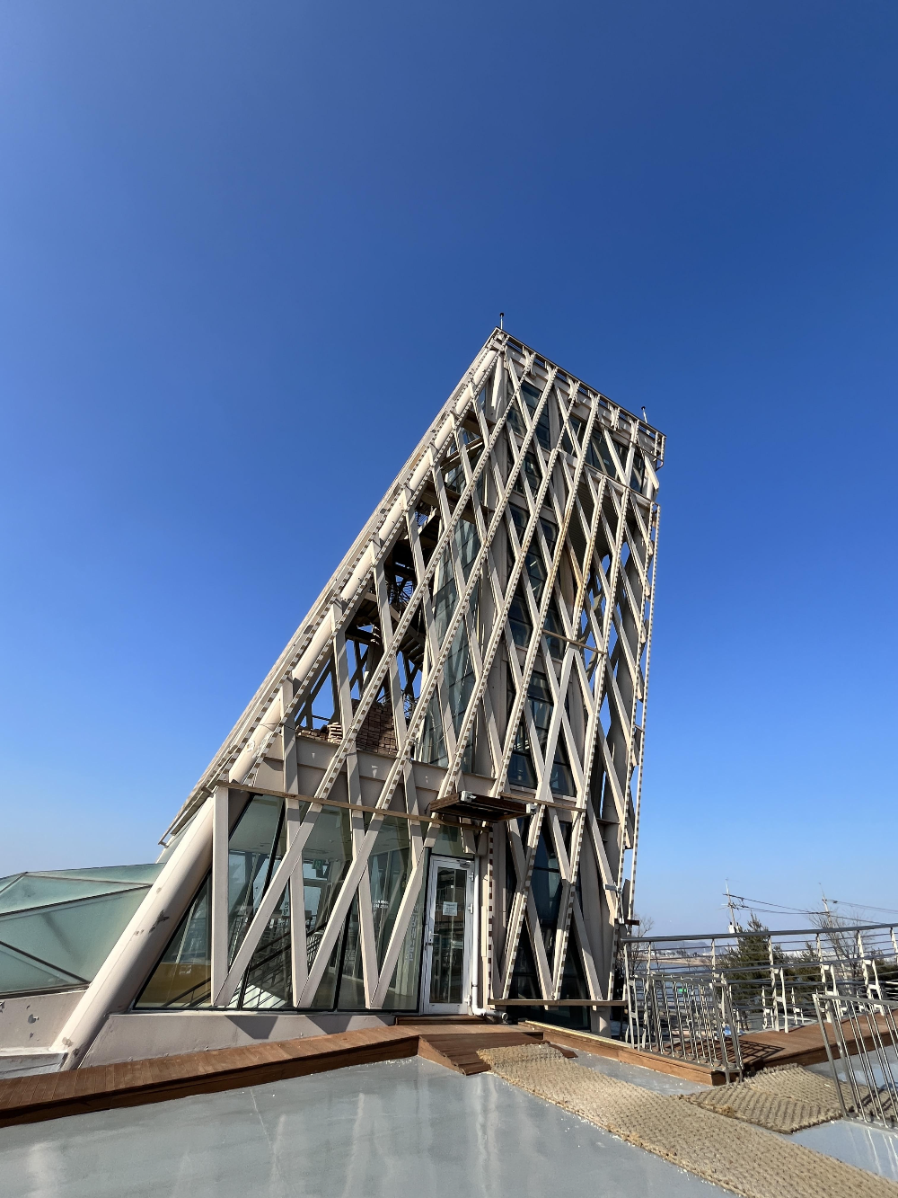멀리서도 한눈에 보였던 전망대입니다. 건물 모양이 독특해서 발걸음이 향했습니다. 아마도 물이 흘렀을 것 같은 곳도 있었습니다. 건물 지하는 갈 수 없었고 2층으로 올라가서 망원경으로 멀리 볼 수 있었습니다. 생각보다 감탄이 흘러나오진 않았습니다. 그래도 시원한 풍경이 좋았습니다.