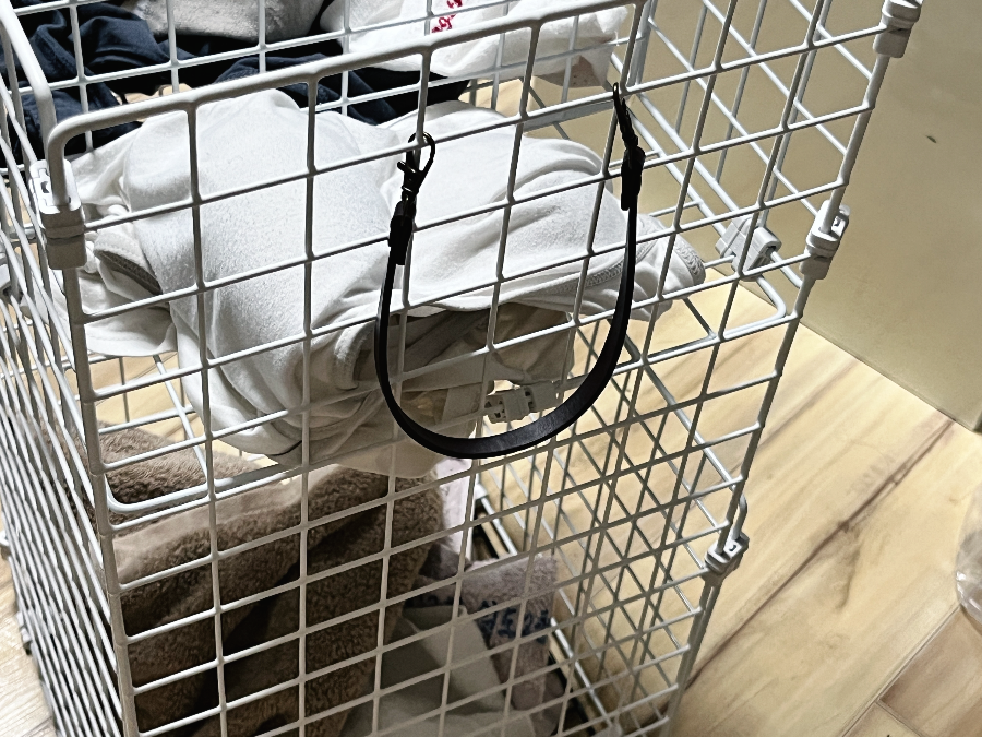 사이 홈도 만들어주고 네트망에 수납을 도와줄 바구니도 함께 구매했습니다. 빨래망을 2단으로 나누기 위해 구멍에 틈을 만들어주었습니다. 이동을 원하신다면 바퀴를 달아주시면 됩니다. 바퀴 크기도 다이소에 다양하게 있기 때문에 원하시는 것을 골라서 구매해주시면 됩니다.