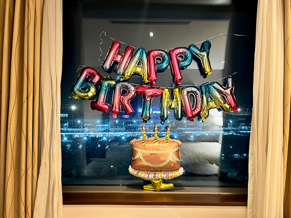 HAPPY BIRTHDAY 레터링 파티풍선과 케이크 파티풍선입니다. 여행을 가서 생일파티를 하게 되어서 자리를 비운 사이에 몰래 이벤트를 해주었습니다. 생각보다 시간이 걸렸으니 이벤트를 준비하신다면 20분 정도는 마련해두셔야 할 것 같습니다. 4,000원으로 마련한 이벤트였지만, 기분 좋은 밤이 되었습니다. 다양한 파티 풍선이 있기 때문에 시간이 더 많으시다면 다양한 풍선들을 준비하셔서 꾸미신다면 더욱 화려하고 즐거운 파티가 될 수 있습니다.
