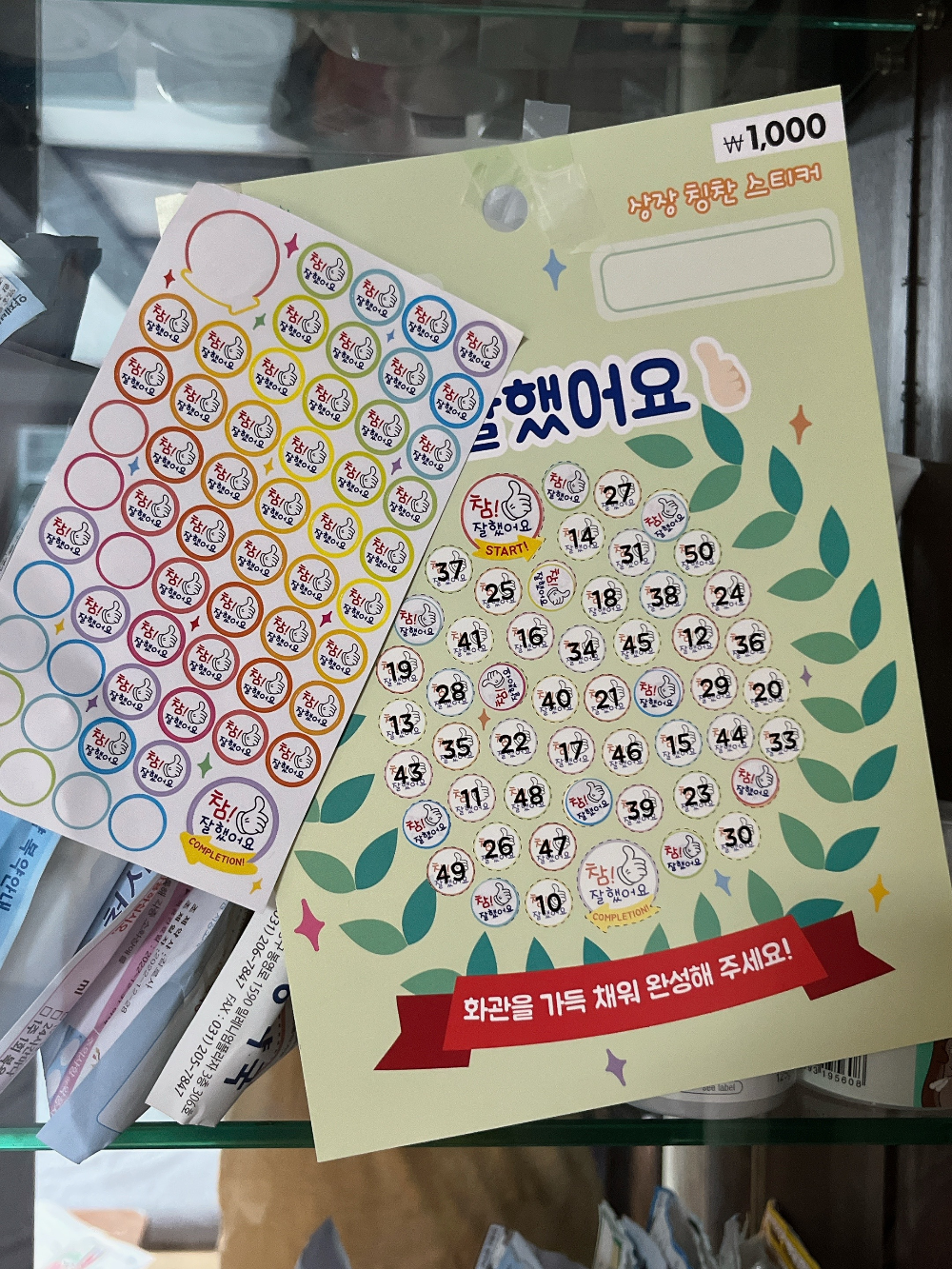 이번에 추석에 조카네서 본 다이소 스티커입니다. 칭찬스티커를 붙이는걸 너무 좋아했던 조카!! 칭찬 스티커를 받기 위해 정리정돈도 열심히 하고 밥도 잘 먹고~ 생각보다 잘 통했습니다! 아직 숫자를 다 셀수 없었지만 스티커를 붙이면서 숫자찾기 놀이까지 할 수 있어 1석 2조의 효과가 있었습니다. 아이가 아니더라도 결심한 것들이 실행에 잘 옮겨지지 않는다면 나와의 약속으로 한번 해보세요!! 유치할 수 있지만, 도움이 됩니다!