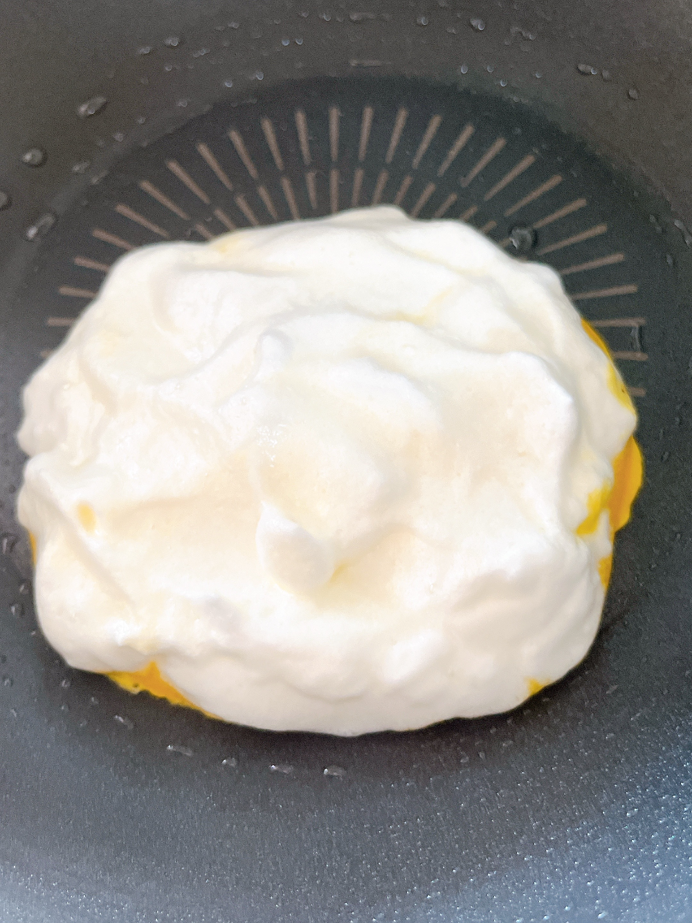 참고용으로 계란 한개를 흰자와 노른자를 구별하셔서 각각 소금, 설탕, 후추를 톡톡 적은양 뿌려주신 후 흰자를 열심히 거품기로 돌려주세요! 그러면 점점 하얗게 휘핑크림처럼 변하게 됩니다. 그럼 후라이팬에 기름을 살포시 두른후 노른자를 쉐키쉐키 살짝 해주시고 얇게 펴주세요. 그 위에 흰자를 살포시 올려주고 뚜껑을 덮고 아주아주 약한불로 데워주세요. 그럼 아주 탱그르르르한 수플레가 완성됩니다. 반 자르셔서 덮어서 드셔도 좋습니다. 안그럼 손을 써야할수도;;;;;