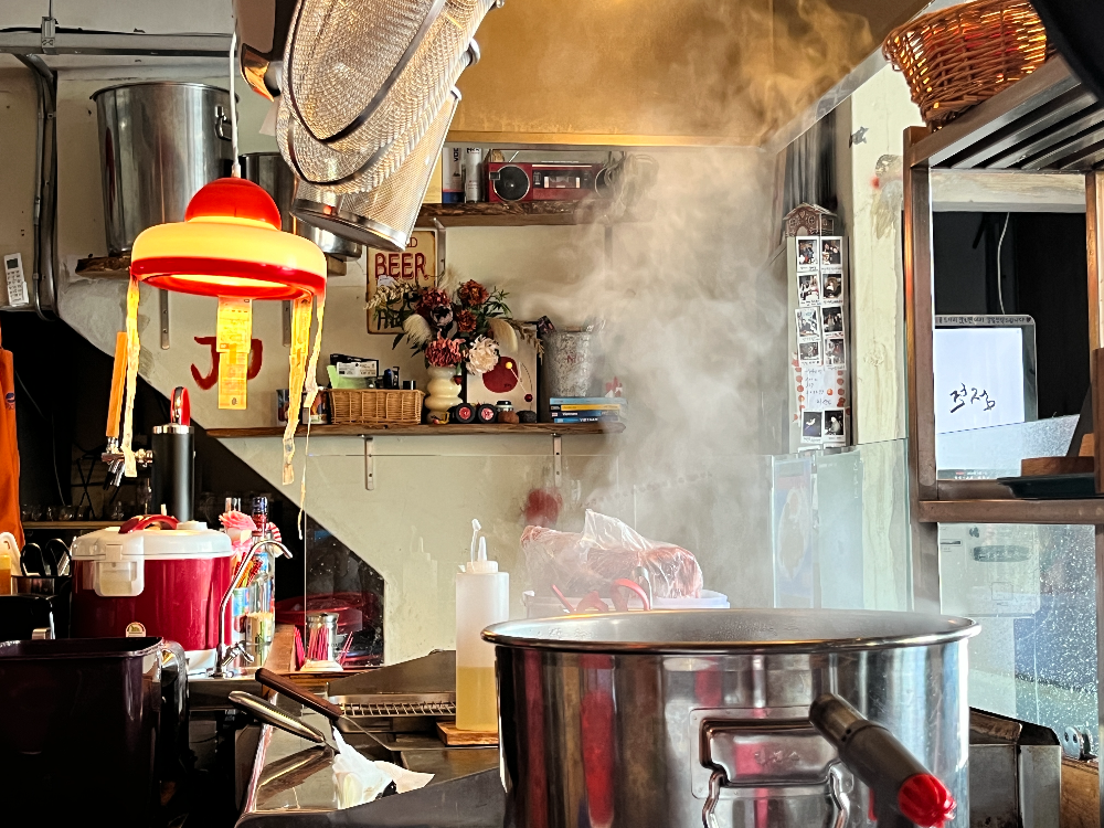 베트남에 가보지 않았지만, 베트남에서 먹는 느낌이 이런 느낌이 날까? 상상하게 되었습니다. 노상은 아니지만, 노상에서 먹는 느낌이었습니다. 오픈 주방이라서 식사하는 중에 조리가 다 끝나시면 사장님이 말도 걸어주십니다. 물어보는 말에 친절하게 설명도 해주십니다. 소통과 공감이 차근히 쌓이길 바라는 사장님의 마음이 담긴 곳이기도 했습니다. 주방과 너무 가까운 곳이라서 요리하시기 불편하실 수 있으실 것 같다는 생각이 조금 들었습니다. 그만큼 위생적인 부분이나 여러 가지를 더 신경을 써주실 거란 생각도 들었습니다.