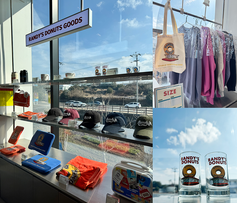 랜디스 도넛의 다양한 굿즈들, 전 유리컵이 참 마음에 들었어요. 시원하게 맥주를 마시고 싶다는 생각이 들었어요. 헤헤