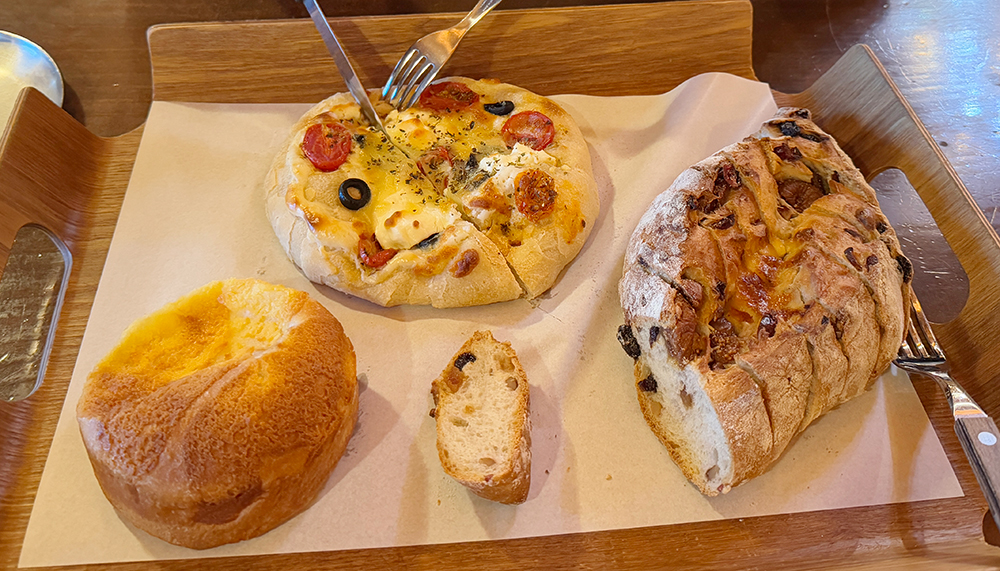 제주 말차 크루아상과 한라봉이 듬뿍 들어간 크림빵, 흑돼지 소시지 페스트리 등 제주만의 특색을 갖추고 있는 점이 좋았습니다. 제주 대형 베이커리 카페인만큼, 음료는 주문이 나올 때까지 시간이 걸리기 때문에 음료를 빵보다 먼저 주문하시는 것도 좋을 것입니다. 한쪽에 전자레인지와 미니 오븐도 준비되어 있기 때문에 취향대로 빵을 데워서 드실 수 있습니다.