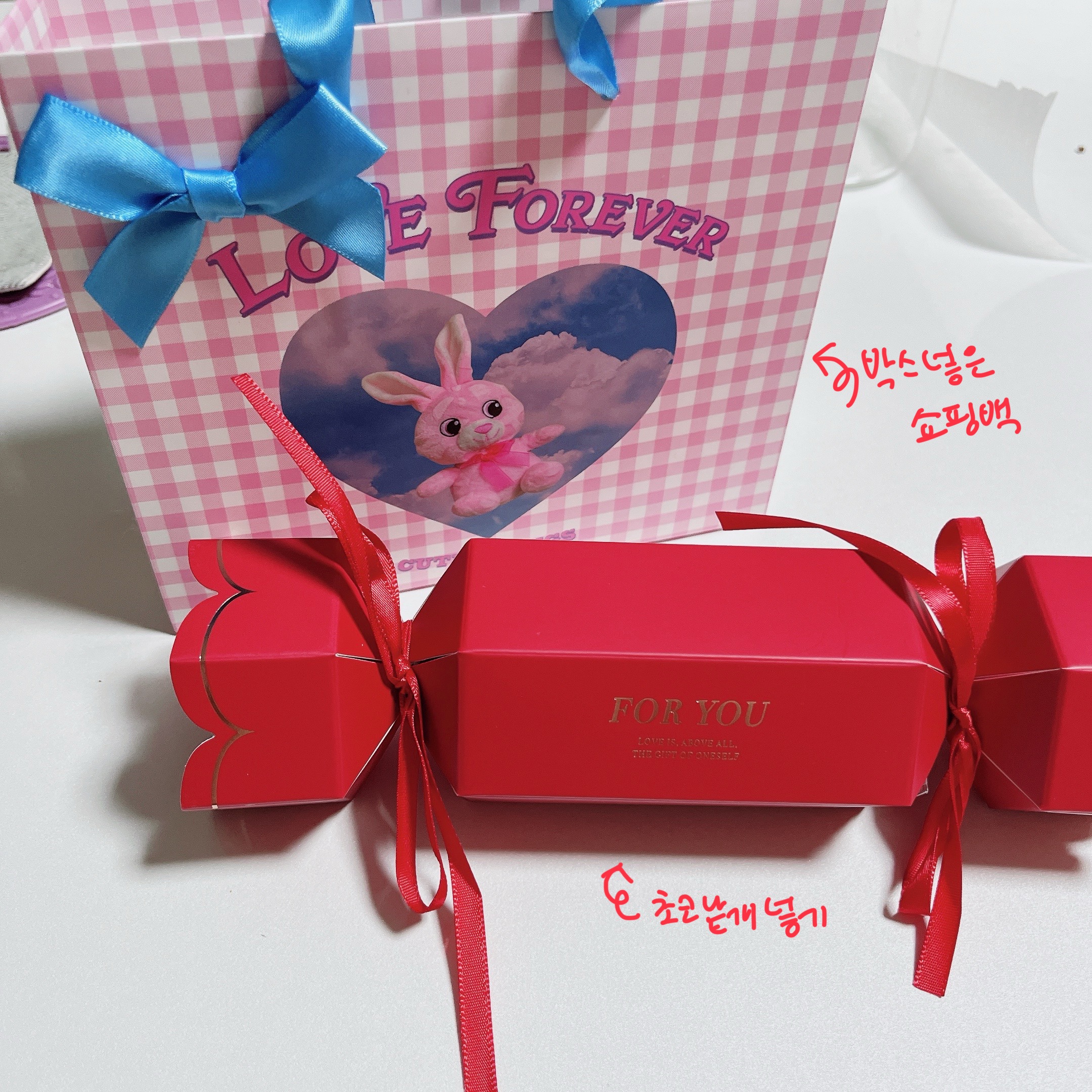 9구 초콜릿 상자는 작은 쇼핑백에 넣었습니다. 사탕 모양 선물세트 상자도 리본을 묶어 완성했습니다. 아기자기하게 완성되어 더욱 좋았습니다. 화려하지 않지만 소소한 저의 마음이 가득 담긴 선물입니다. 헤헤 조금 약소하지만, 기분 좋게 받고, 즐겁게 먹었으면 좋겠습니다.