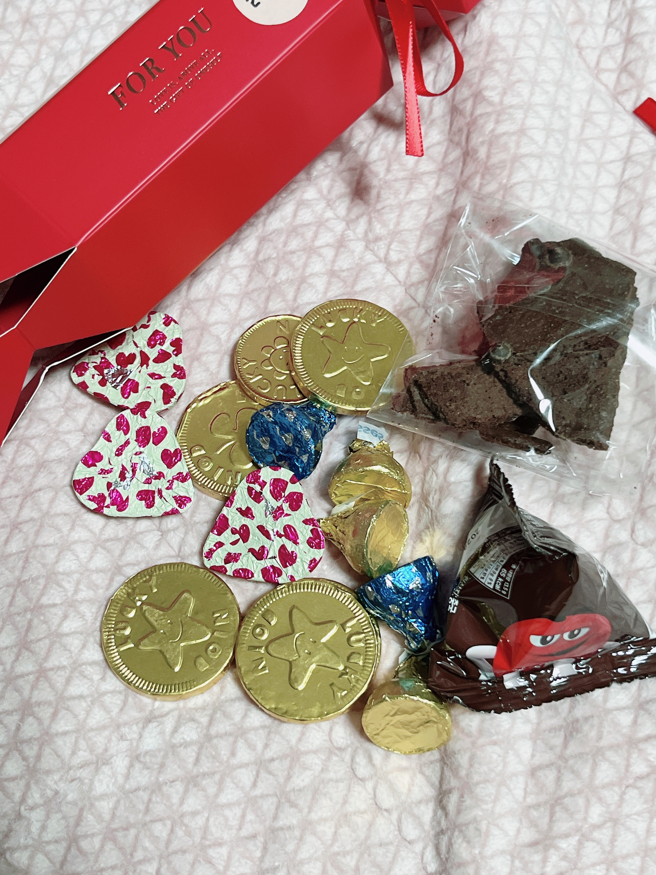 귀여운 초콜릿들이 많아서 하나씩 사왔습니다. 다이소에는 소분포장하여 파는 초콜릿이 다양하게 있기 때문에 만들지 않아도 원하는 초콜릿을 구매하여 포장을 하는것도 좋을 것 같았습니다. 맛도 더 좋을 수도 있기 때문입니다. 저는 키세스와 M&M과 동전 초콜릿들을 함께 구매했습니다. 그리고 따로 구매한 다른 초콜렛도 담아보았습니다. 초콜렛을 담을 선물세트 박스도 다이소에서 파는 사탕 모양 포장지로 4개 세트입니다. 가볍게 주변 지인들에게 선물하기 좋은 구성이었습니다.