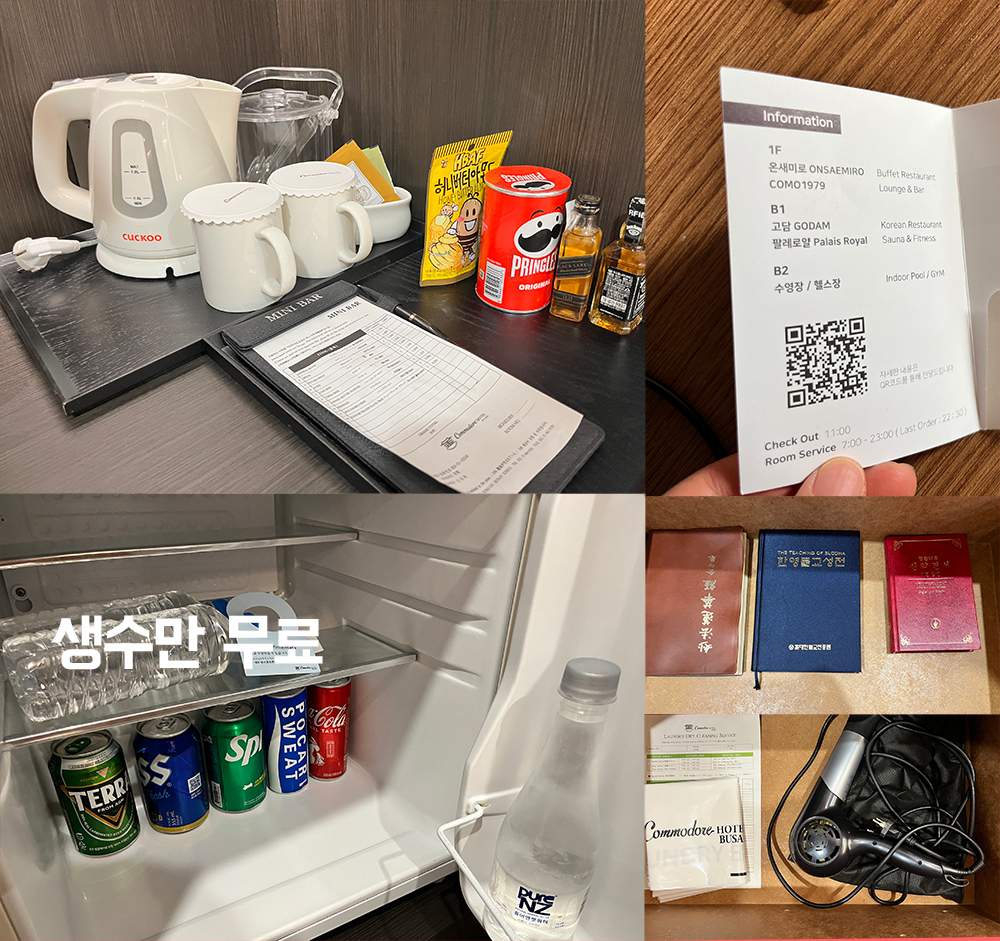 생수 외 다른 것들은 원하시는 분들은 드시고 빌지에 체크하셔서 체크아웃할 때 정산해 주시면 됩니다.
