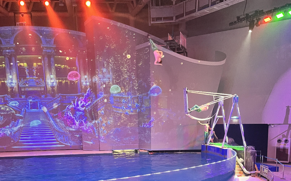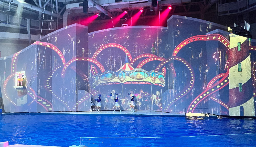 드디어 시간을 맞추고 아레나 공연장에 도착했습니다. 내용은 1부 바다사자 치코, 2부는 미디어 파사드 아쿠아쇼입니다. 약 40분간 배경이 다양하게 바뀌면서 그에 맞는 퍼포먼스가 이어집니다. 공연을 보기 전에는 재미없으면 나가자고 그랬는데 끝까지 다 보고 나왔습니다. 생각보다 시간은 꽤 길었는데 지루하지 않았습니다. 공연하시는 분들도 정말 멋지다는 생각을 했습니다.