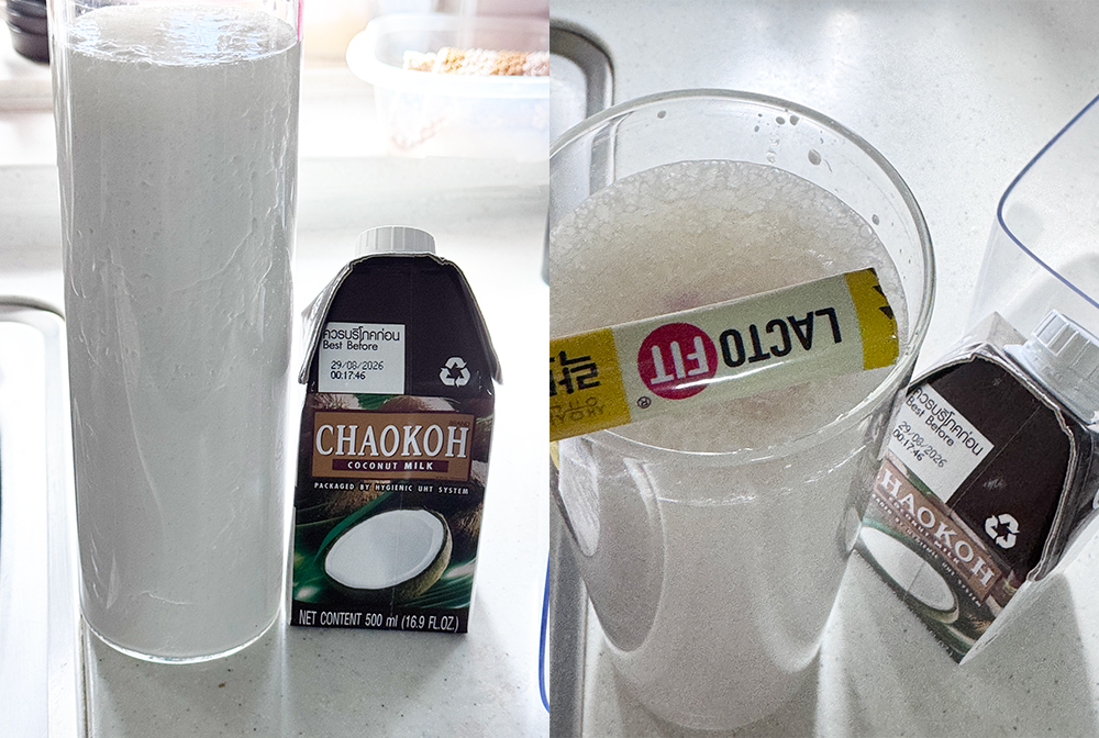 저는 그릭요거트 만들기 세트가 모두 있기 때문에 코코넛요거트따위 잘 만들수 있어! 라는 헛된 자신감이 있었던것 같아요. ㅠㅠ 무엇보다 재료가 제일 중요한겁니다요! 대부분 사람들이 요거트 스타터, 유산균 제품이나 장요쿠르트 등을 사용하셨구요. 저도 락토핏과 혹시 모르니 요거트 스타터까지 더해서 무려 4봉을 털어 넣었습니다.
