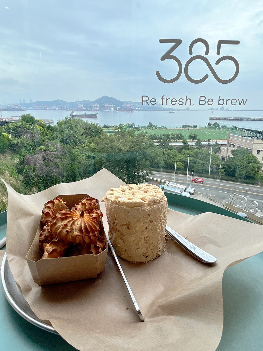 영도 바다 바로 앞에 위치한 카페 385입니다. 매장에서 전문 파티셰가 직접 만든 빵과 블랜딩한 커피를 영도 오션뷰와 함께 할 수 있습니다.