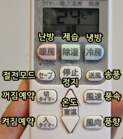들어가자마자 에어컨이 켜져 있었는데 밤에는 조금 추워서 에어컨 온도를 높이거나 끄고 잠들었습니다. 일본어만 적혀있는 에어컨을 보고 전원 끄는 방법을 몰라서 열심히 검색해서 껐습니다. 스위치를 누르자마자 꺼지지 않고 시간이 조금 흐르면 꺼지게 되니 조금 기다려주셔야 합니다. 참고용으로 제가 참고했던 리모컨 이미지를 첨부해 드립니다.