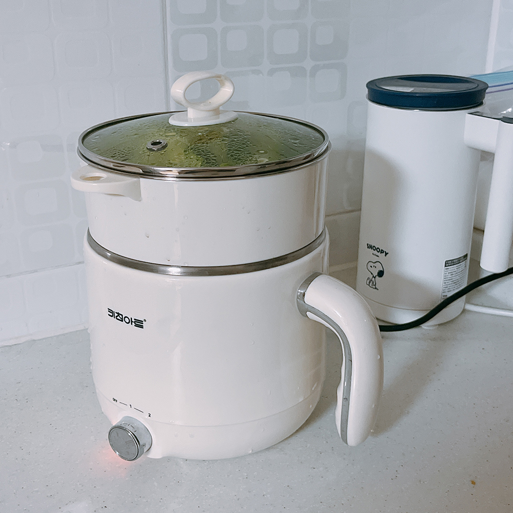 가스레인지 사용을 하지 않고 간단한 조리와 찜을 할 수 있는 멀티쿠커입니다. 일반적으로 라면용도로 나오는 라면쿠커도 있지만 이왕 사는 거 다양하게 쓰기 위해 멀티쿠커로 구매했습니다. 찜기를 올려놓으면 아래 물을 끓이면서 계란을 삶고, 위에 삶고 싶은 야채를 놓아 두 가지를 한 번에 삶으실 수 있습니다. 샤부샤부 같은 테이블 위에서 조리해야 하는 요리들이 가능하고, 식사 중 식어가는 음식을 데우는 용도로 사용하셔도 됩니다. 특히 다이어트를 하신다면 가볍게 찌는 요리들을 많이 하시게 되는데 멀티쿠커가 역할을 톡톡히 합니다.
