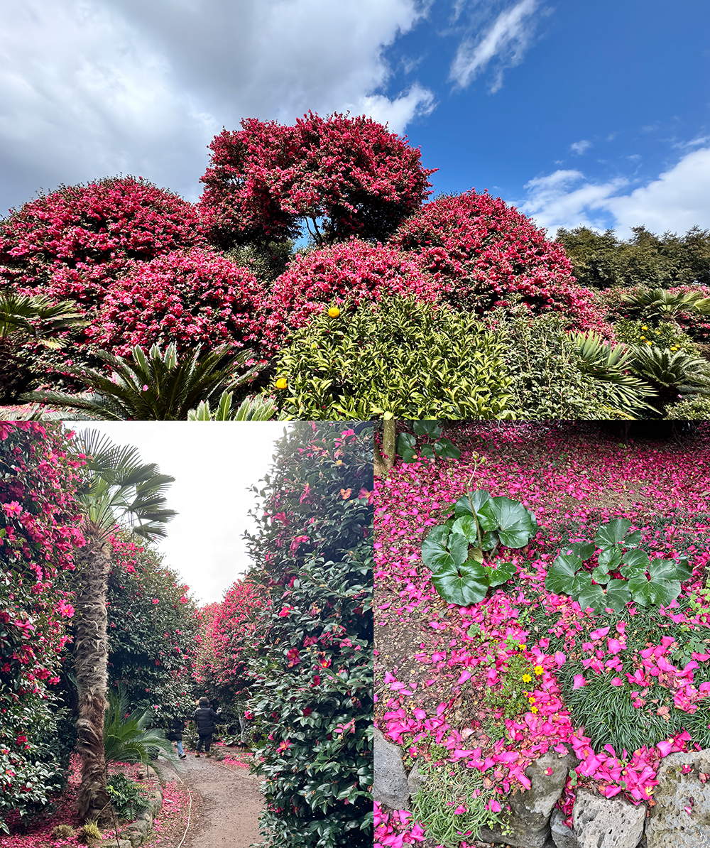 2월 초에 갔는데, 생각보다 꽃이 많이 만개해 있어서 너무 좋았습니다. 바닥도 핑크로 물들인 동백꽃잎도 너무 예뻤습니다. 한때 꽃잎들을 주워서 날리면서 찍는 사진들도 유행을 했었는데~ 시간적 여유들이 있으시다면 한번 도전해 보셔도 좋을 것 같습니다. 생각보다 꽃잎들이 많아서 금세 모을 수 있을 것 같았습니다.