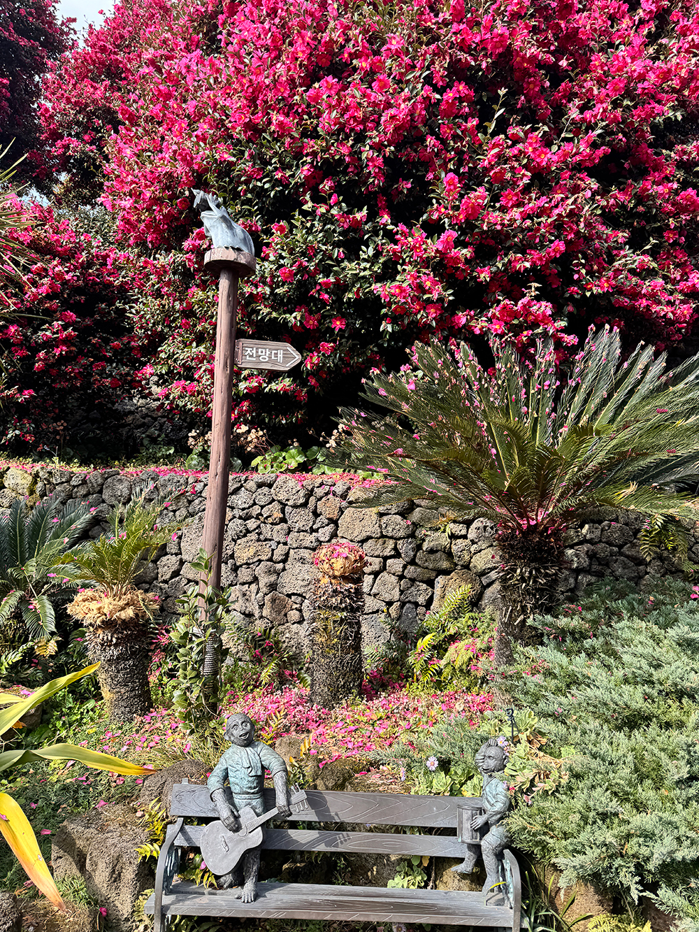 관람을 시작해 보겠습니다. 제주를 느낄 수 있도록 꾸며져 있었습니다. 제주 돌담, 동백꽃, 야자수들이 분위기를 만들고 있는 것 같았습니다.