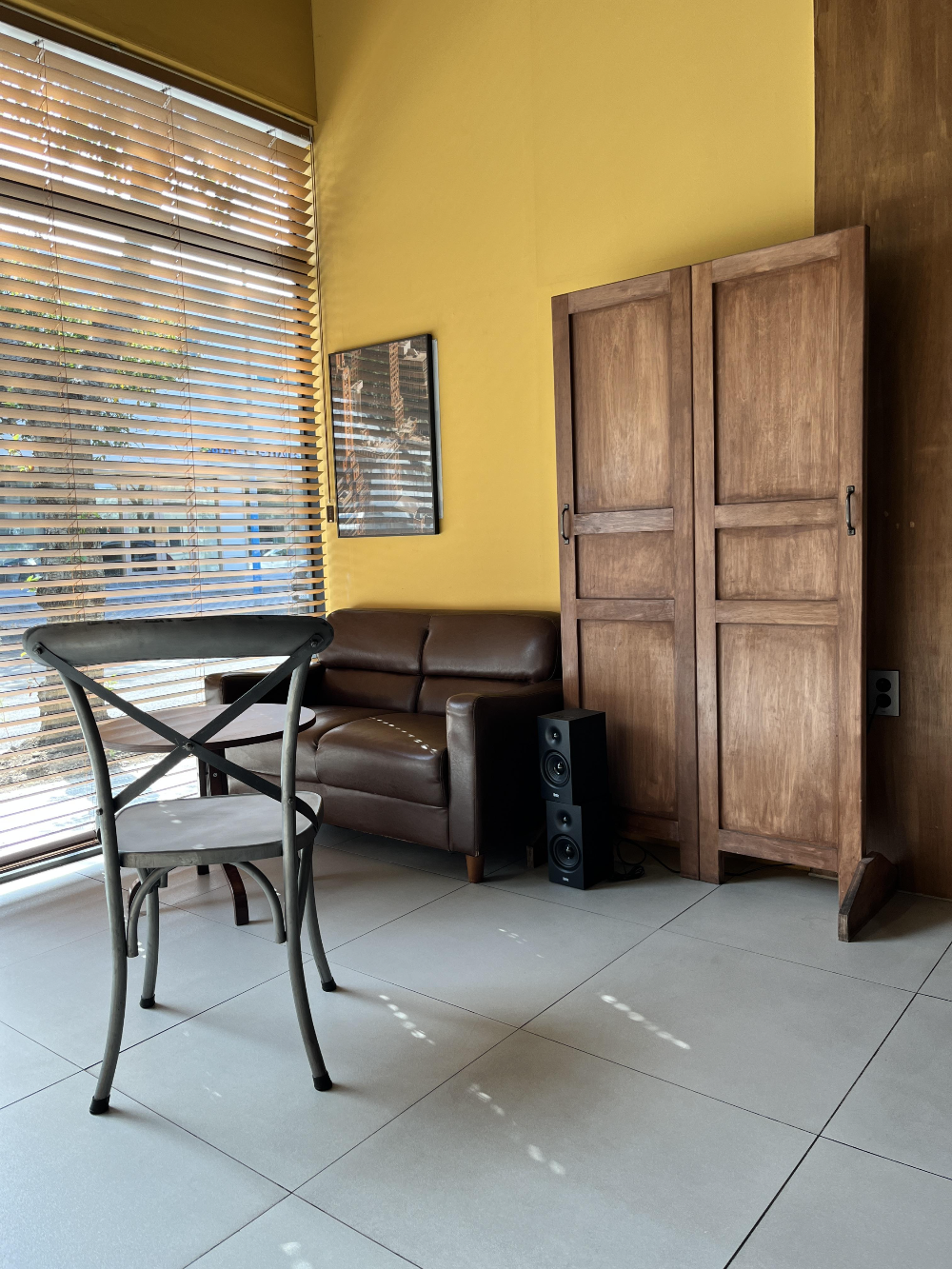 뭔가 도시 한복판 귀퉁이 어딘가에 있을 것 같은 분위기 입니다. 테이블에 맞춰진 의자가 놓여져 있어 자리마다 다른 느낌들이 있습니다. 테이블이 의자보다 높은걸 원하시거나 낮은걸 원하시거나 취향에 따라 자리를 고르셔도 좋을것 같습니다. 저는 테이블이 너무 낮은건 불편해서 쇼파자리가 탐나긴 했지만, 편안해보이는 평범한 자리에 자리를 잡았습니다. 테이블별로 분위기가 달라서 고르는 재미가 있습니다.
