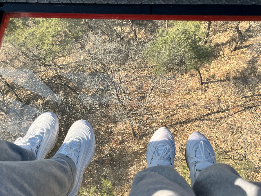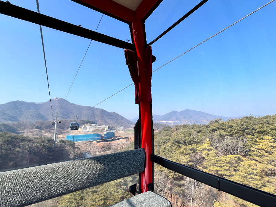 케이블카를 타고 이동하기 시작했습니다. 처음에 덜컹덜컹 거릴 때마다 조금 겁이 나긴 했습니다. 케이블카는 사방이 다 뚫려있는 편입니다. 저희는 바닥이 뚫려있는 크리스탈을 탔기 때문에 하늘을 나는 느낌을 조금 느낄 수 있었습니다. 하핫, 비행기를 타고 보는 느낌과 또 다른 느낌이었습니다. 하늘 위에서 보는 느낌도 꽤 재미있었습니다.
