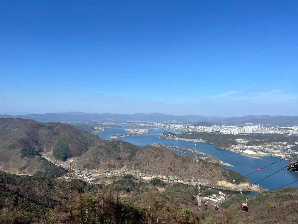 우리나라에서 최장 길이의 케이블카라고 합니다. 사진속에서만 봐도 얼마나 길이가 긴지 느껴지시죠? ^^ 활과 부메랑을 형상화하였다고 했는데 사진 속에서 보시면 곡선 형태로 이어져있어 무슨 느낌인지 알 수 있을 것 같았습니다. 삼천동에서 의암호를 지나 삼악산을 연결하는 3.61km의 길이로 약 15분정도 케이블카를 타실 수 있습니다.