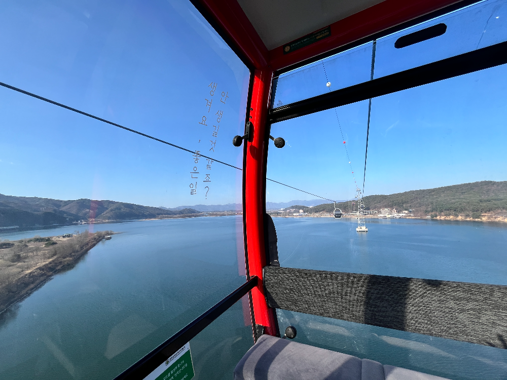 오늘은 강원 여행으로 춘천에 다녀온 이야기 중 하나입니다. 지난번 여행들에 소개를 못 해드린 곳도 있지만, 춘천 이야기를 먼저 꺼내봅니다. 춘천여행 일정 중 두 번째 일정으로 춘천 삼악산 호수케이블카 의암호 정차장을 다녀왔습니다. 예전에 청풍호반 케이블카를 탔던 기억이 나면서 두 가지가 조금씩 차이가 있음을 느꼈습니다. 각각 매력이 조금씩 다르다고 생각하면 될 것 같습니다. 삼악산 호수 케이블카 이야기를 보시고 충북 제천의 청풍호반 케이블카 이야기도 보시면 비교가 되실 것 같습니다. 저의 남자친구는 고소공포증이 조금 있어서 청풍호반 케이블카를 같이 탈 때는 긴장을 많이 했었는데 이번 삼악산 호수 케이블카를 탈 때는 너무 여유로웠습니다. 익숙해진 것인지 풍경에서 오는 차이인지는 잘 모르겠지만, 즐겁게 풍경을 즐길 수 있어 좋았습니다.
