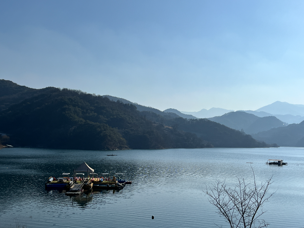 청풍호와 함께 펼쳐지는 풍경이 낭만적이었습니다. 함께 걸을 수 있는 시간이라 더 그렇게 느꼈을까요? 선명한 풍경은 아니었는데도 아련히 보이는 산맥들이 좋았습니다. 옛날 수묵화 풍경을 보는 것 같기도 했습니다.