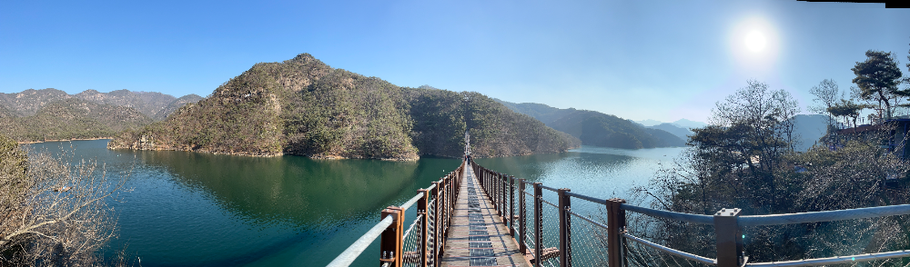 옥순봉 출렁다리에서 아이폰 파노라마로 찍어보았습니다. 멋진 풍경이 다 담기진 않았지만, 그래도 조금이라도 느껴보셨으면 좋겠습니다. 충북 제천여행을 준비하신다면 드넓은 청풍호에 둘러싸인 옥순봉의 멋진 풍경을 보시러 한번 가보세요! 저는 즐거운 시간을 보내고 왔습니다. 이젠 추억이 있는 곳이 되었습니다.