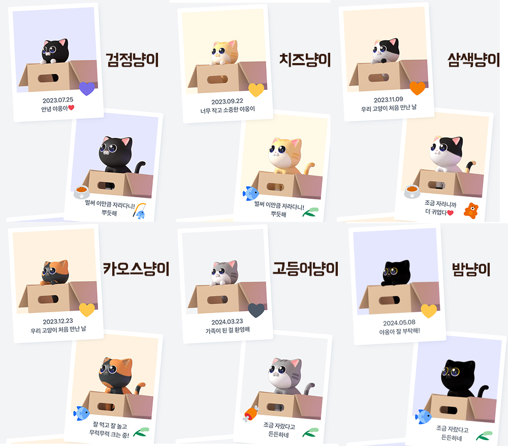 키우지 못한 고양이들은 친구들을 통해 구경하고 있습니다. 남은 고양이들도 너무 귀여워서 빨리 키우고 싶습니다. 고양이를 다 키우게 되면 고양이가 브랜드콘을 가지고 옵니다.