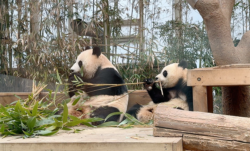 같은 대나무를 나눠 먹기도 해요. 가족이란게 이런건가 싶기도 하구요 ^^ 밥 먹는거 구경하는건데도 참 멍 하니 보기 좋더라구요. 시간이 조금만 더 길면 좋겠지만...