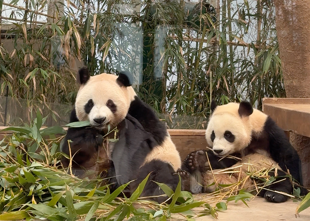 같은 대나무를 나눠 먹기도 해요. 가족이란게 이런건가 싶기도 하구요 ^^ 밥 먹는거 구경하는건데도 참 멍 하니 보기 좋더라구요. 시간이 조금만 더 길면 좋겠지만...
