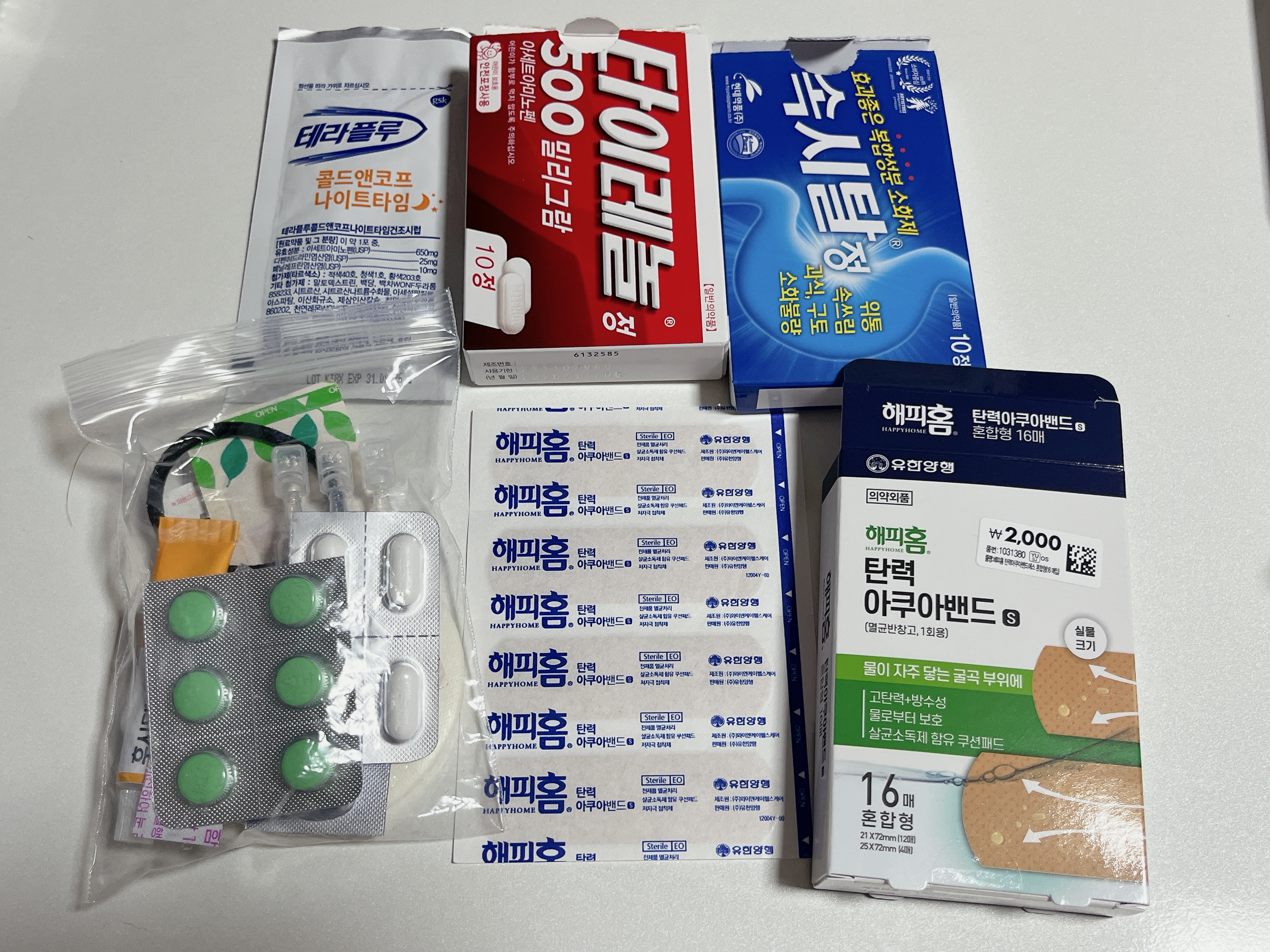 비상약입니다. 감기약, 두통약, 소화제를 기본으로 준비했습니다. 후시딘과 소독약, 그리고 대일밴드입니다. 대일밴드는 다이소에서 구매하였고 나머지는 약국에서 구매하였습니다. 큰 가방에는 적당한 수량을 넣고, 여행 중에 사용할 작은 가방에는 한알씩 넣어두시면 좋습니다. 그래야 정말 필요할 때 바로 사용하실 수 있습니다. 큰 가방에 넣어두고 숙소에 두고 나가시면 사용할 수 없기 때문입니다.