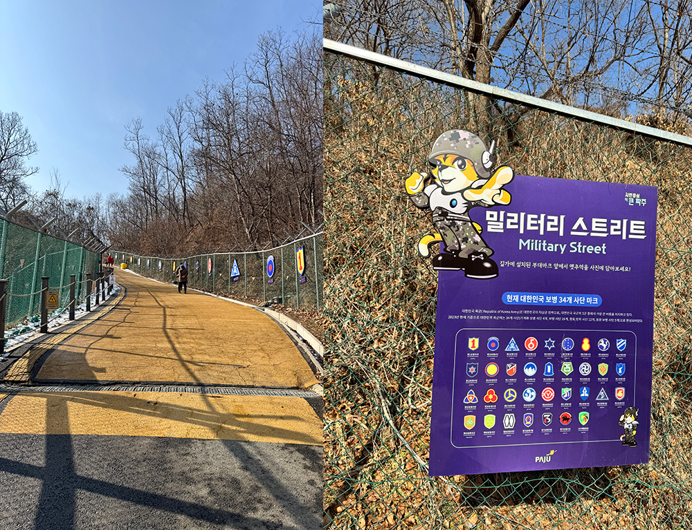 DMZ존에 도착하면 전망대가 있는 밀리터리 스트리트를 걷게 됩니다. 현재 대한민국 보병 34단 사단 마크들을 감상하는데, 군대를 다녀오신 분들이라면 공감하는 공간이기도 합니다. 기념 인증숏을 찍는 분들도 계셨습니다.