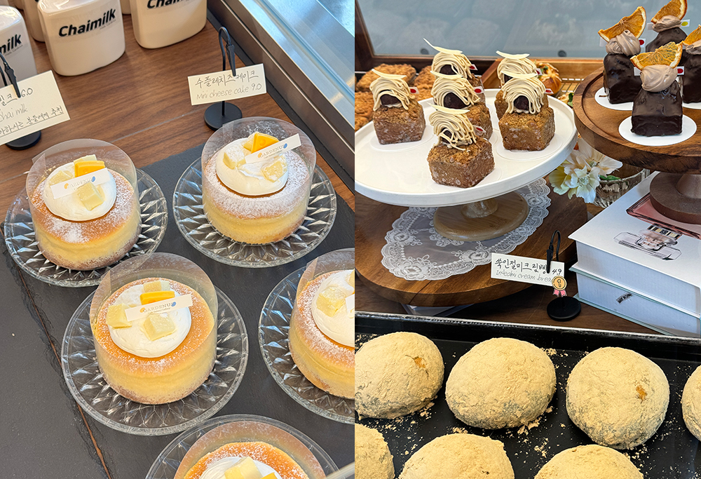 커피는 신선한 원두와 좋은 맛을 제공하기 위해 좋은 원두로 사용 기간을 정확히 맞춰 사용하고 가드너스 블랜드, 프릳츠 원두를 사용하고 있다고 합니다. 우유는 일반우유 또는 귀리 우유 중 선택이 가능합니다. 대형카페나 뷰가 좋은 카페들을 가면 커피와 빵 가격이 비쌀 때가 많은데 가드너스는 합리적인 가격들이어서 더 좋았습니다.