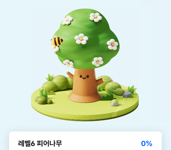레벨은 총 6까지 있습니다. 레벨 1은 빼꼬미, 레벨 2는 새싹이 돋아난 팔랑초, 레벨 3은 다육이, 레벨 4는 나무 형태로 우뚝이, 레벨 5는 나뭇잎이 풍성한 자라나무, 레벨 6은 꽃이 활짝 핀 피어나무입니다. 나뭇잎이나 벌, 나비, 새 등이 날아다니기도 합니다. 행복한 표정으로 웃고 있는 초록이가 너무 귀엽습니다. 물 주기와 영양제를 주면 화면에 작은 변화들이 생깁니다. 특히 물 주기는 구름이 와서 물을 주는데 귀엽게 표현해 준 것 같습니다. 나무도 키우고 꽃도 키우고 하면 더 재미있을 것 같지만, 앞으로 발전하게 될지 모르겠습니다.
