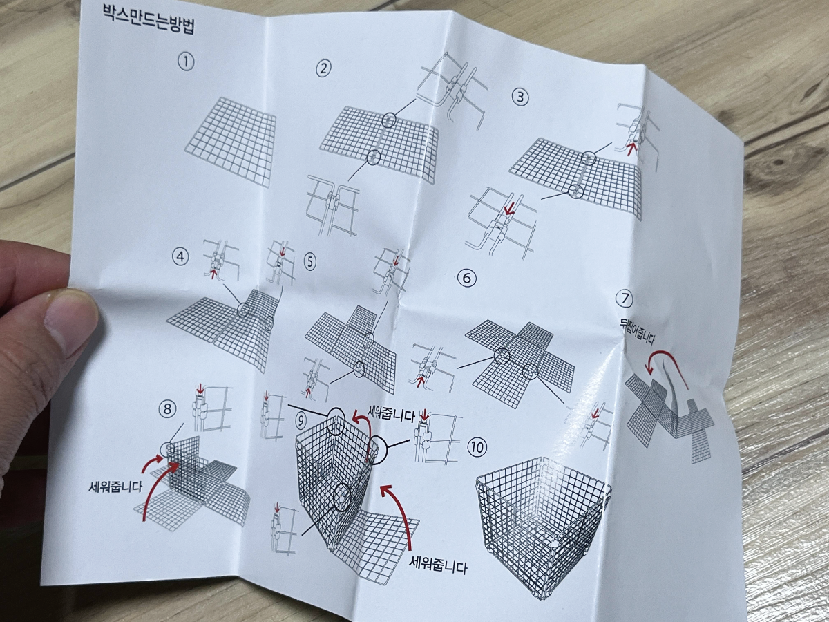 조인트 안에는 네트망을 활용한 바구니 만드는 설명서가 담겨있습니다. 보고 차근차근 만들면 됩니다.
